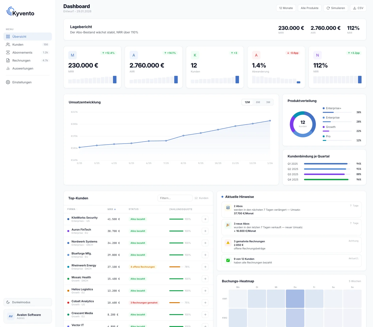 Sie fokussieren sich auf Ihr Produkt – Kyvento übernimmt die komplette Subscription-Verwaltung und Abrechnung.
